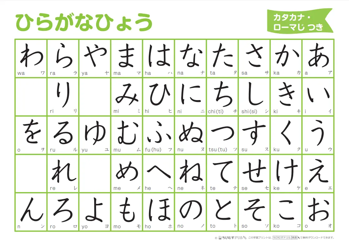Cách đọc bảng chữ cái tiếng Nhật Hiragana